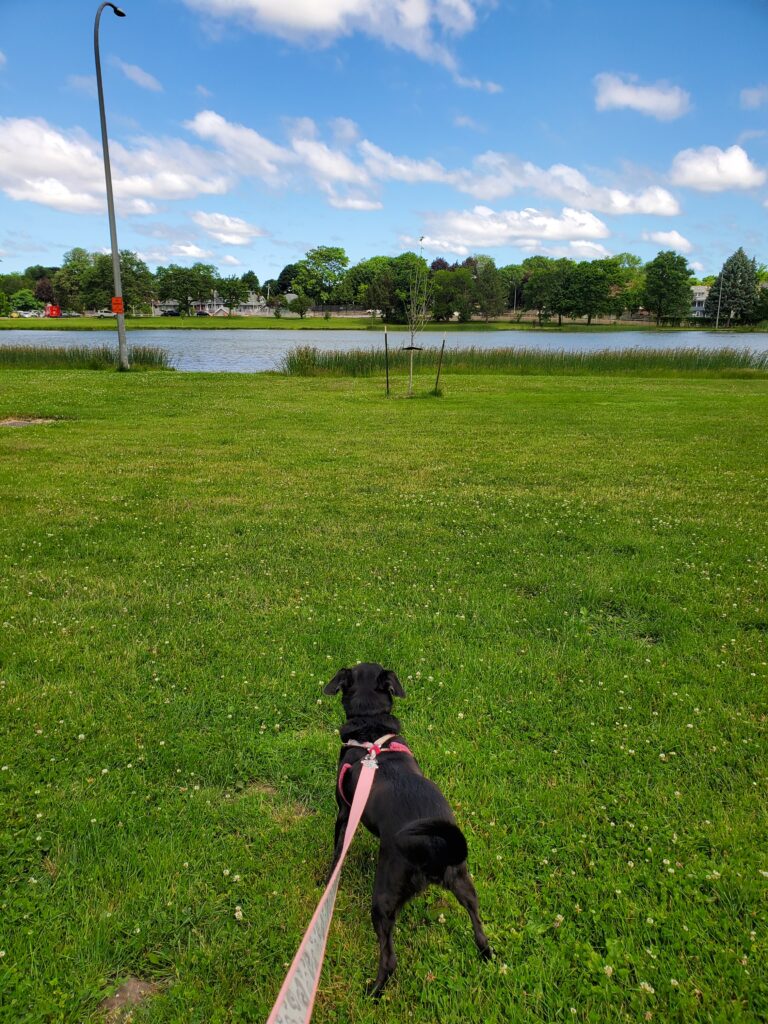 That’s a pic of me and my new sis, Irina – more about that nutter in a sec – walking around one of the lakes. The lakes contained so many great scents – and I am a scent-hound so it was a perfect place for me! Also, duck poop was fab, although Mom always stopped me when she saw me munching on some. Mom loved the lakes because, she said, they were beautiful, but hot in the summer. I never noticed hot.