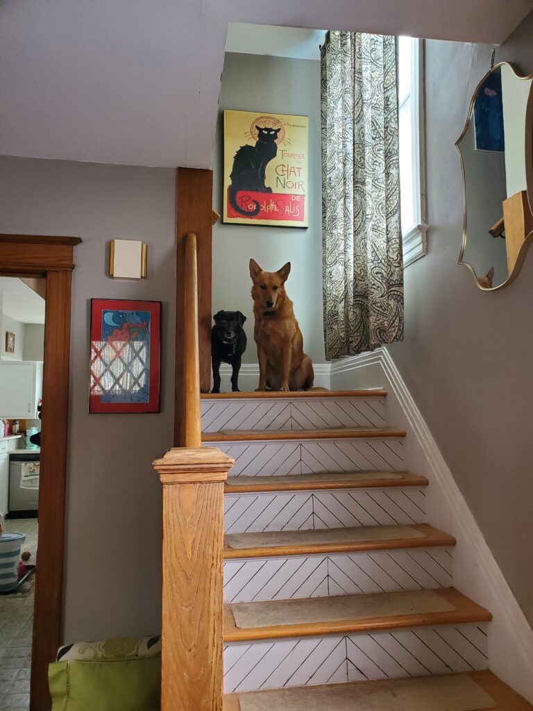 This house is fun. It’s been around for a really long time and is creaky and has an attic and a basement and a side door. Mom calls it our antique doll house. Irina and I call it the up and down house because we’re always running up or down stairs. Up to go inside, up to go to the bedroom for night, down to the kitchen to eat, down to go to the backyard, down again to help Mom with laundry. It’s a fun house and we get a different kind of exercise than with the big flat house in Phoenix!
